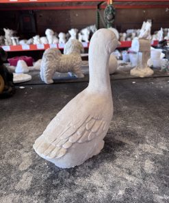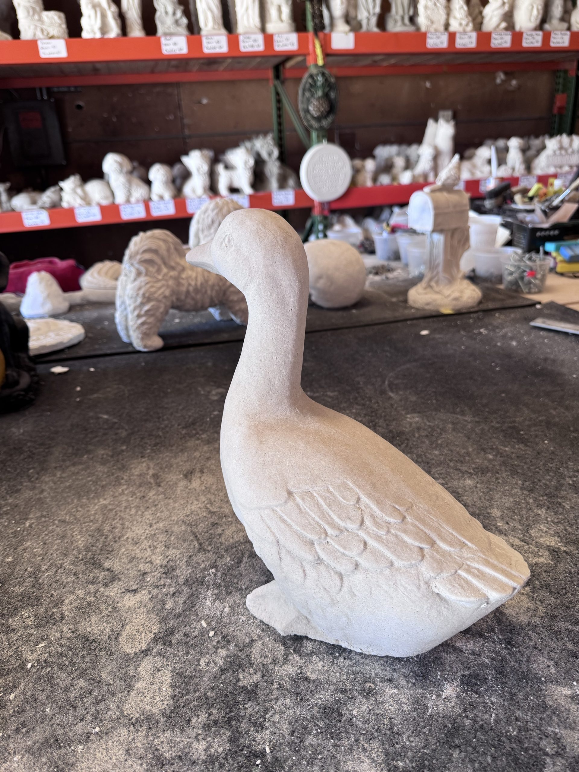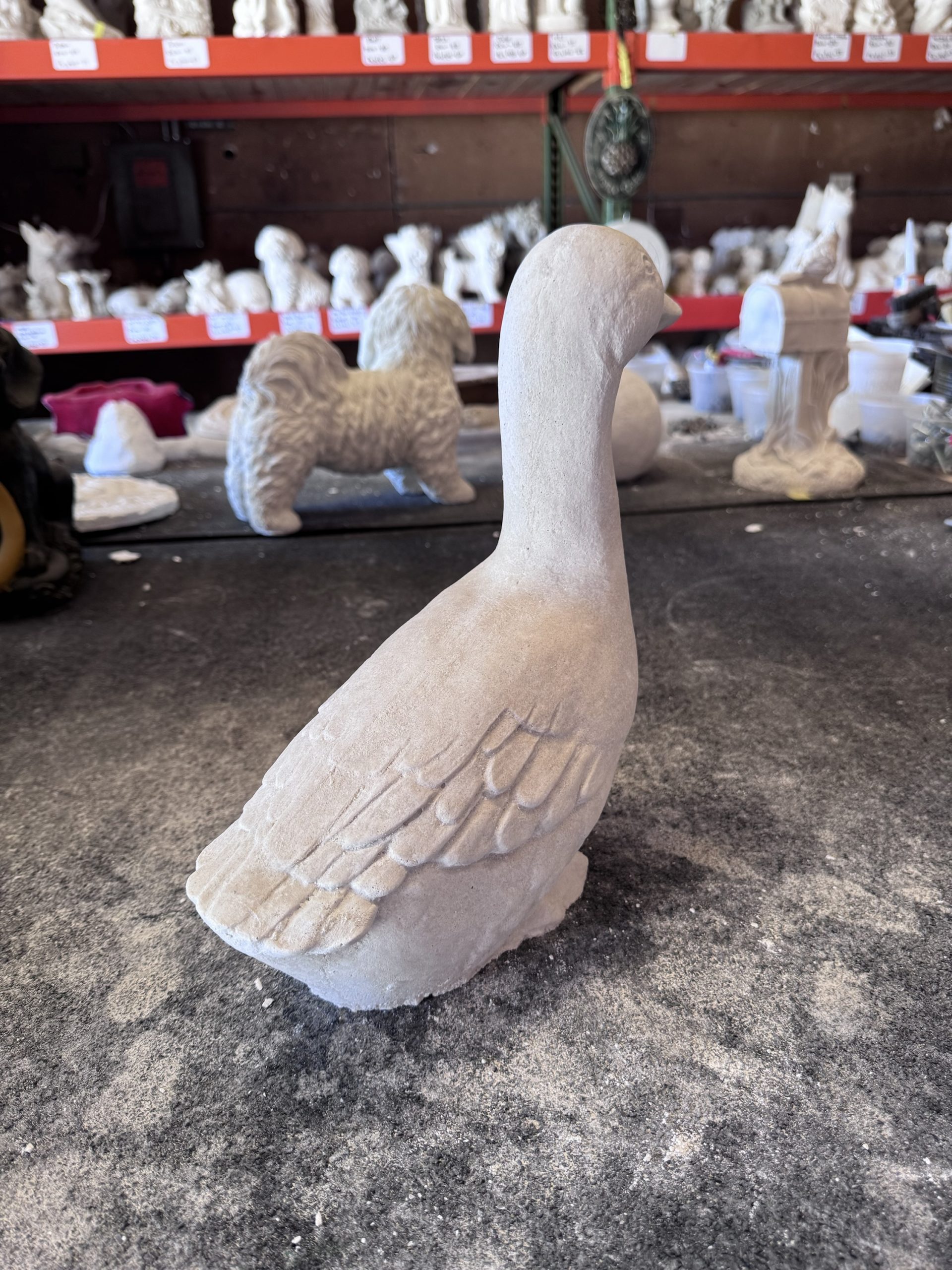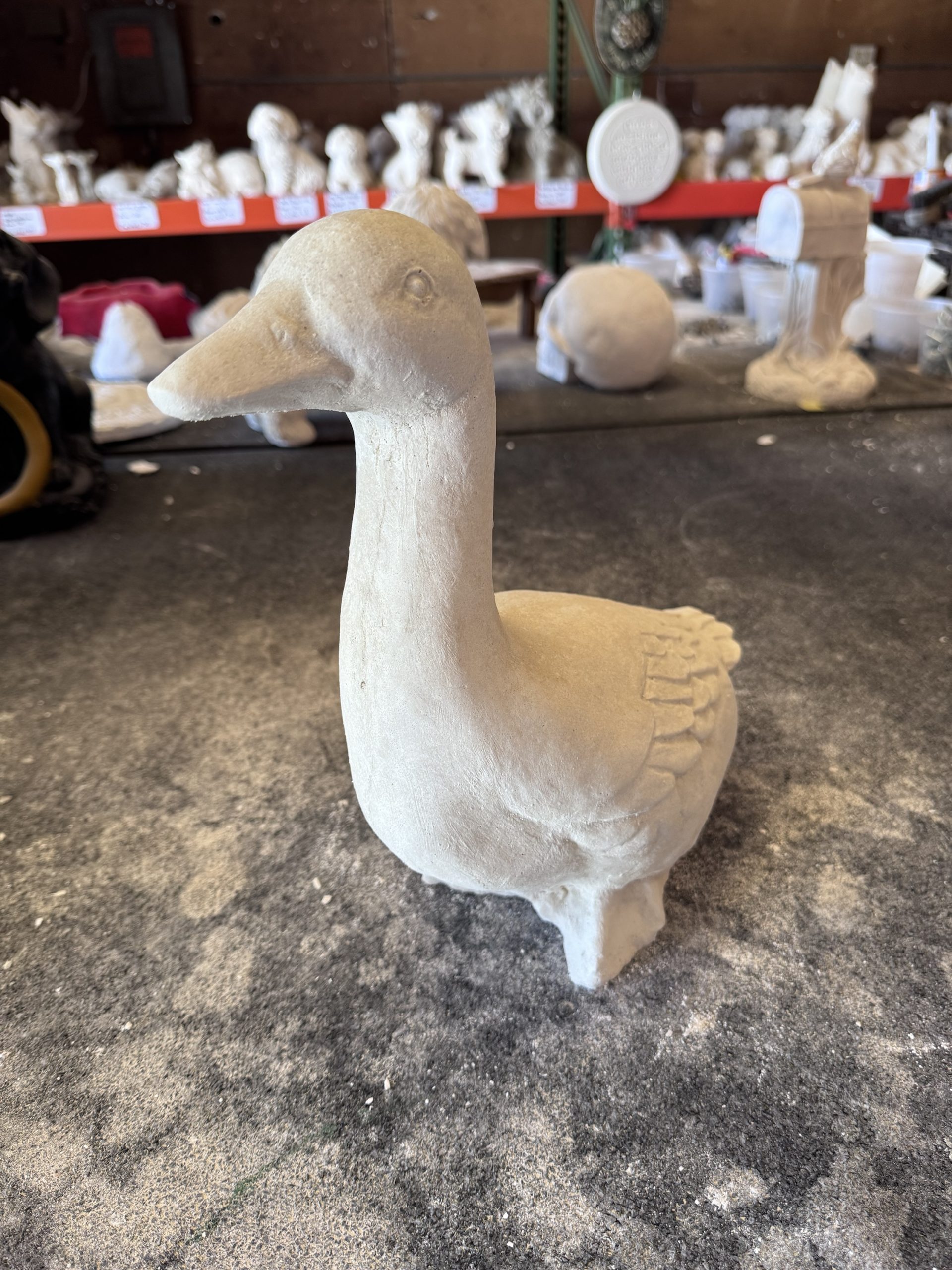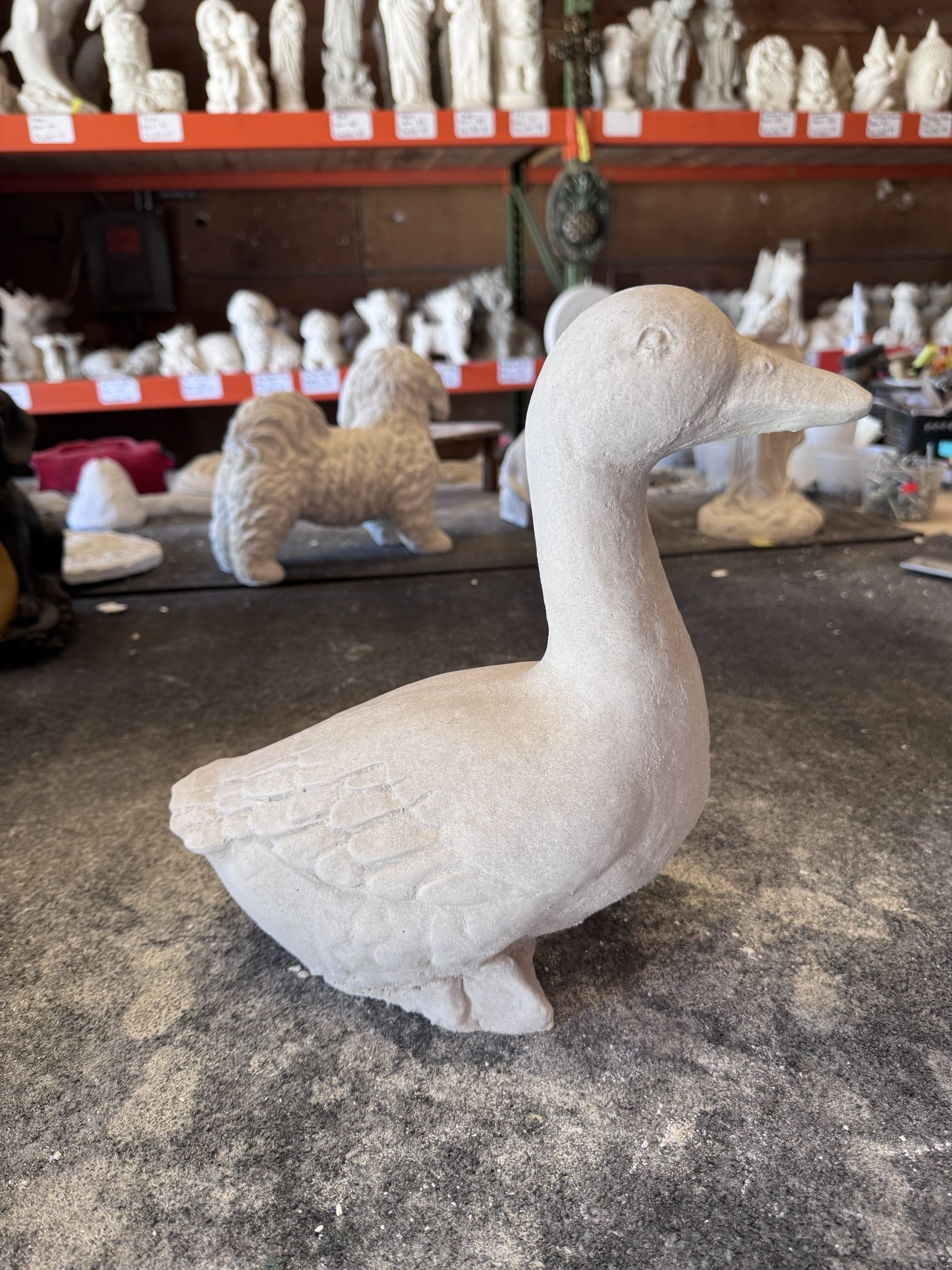 All of our statues are made out of concrete. Most items have some sort of support added to the statue such as rebar or aluminum wire throughout the piece to add strength.