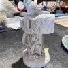 - Another recommendation from us would be to not place them directly under branches. We find that the natural dirt from plants builds up on the statues and you'll find your self spraying them down with the water hose more often.