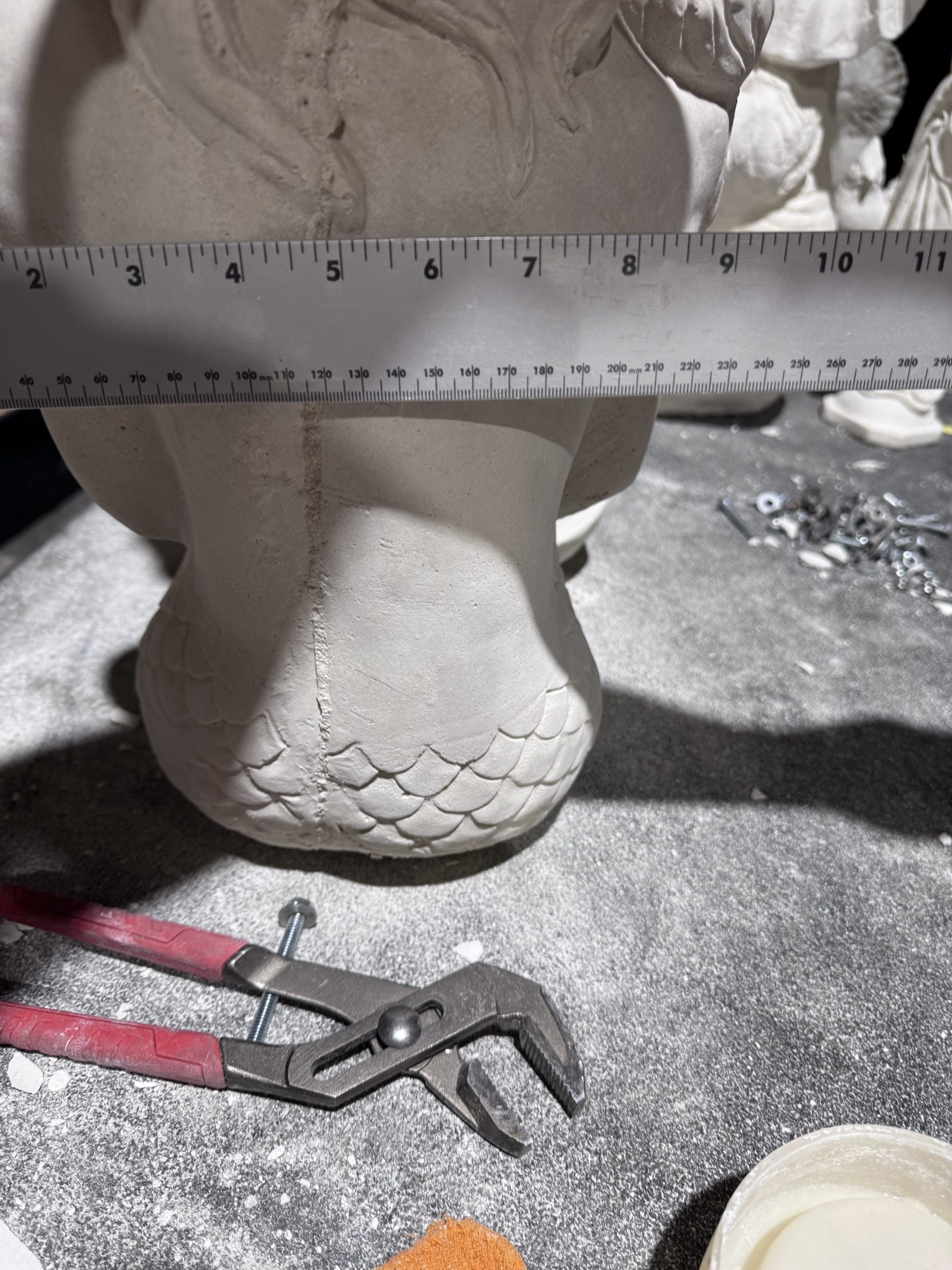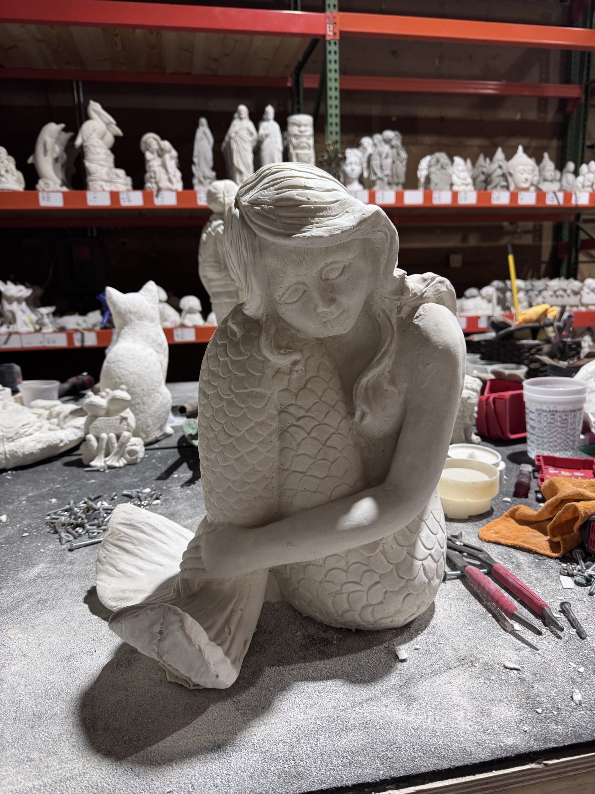 All of our statues are made out of concrete. Most items have some sort of support added to the statue such as rebar or aluminum wire throughout the piece to add strength.