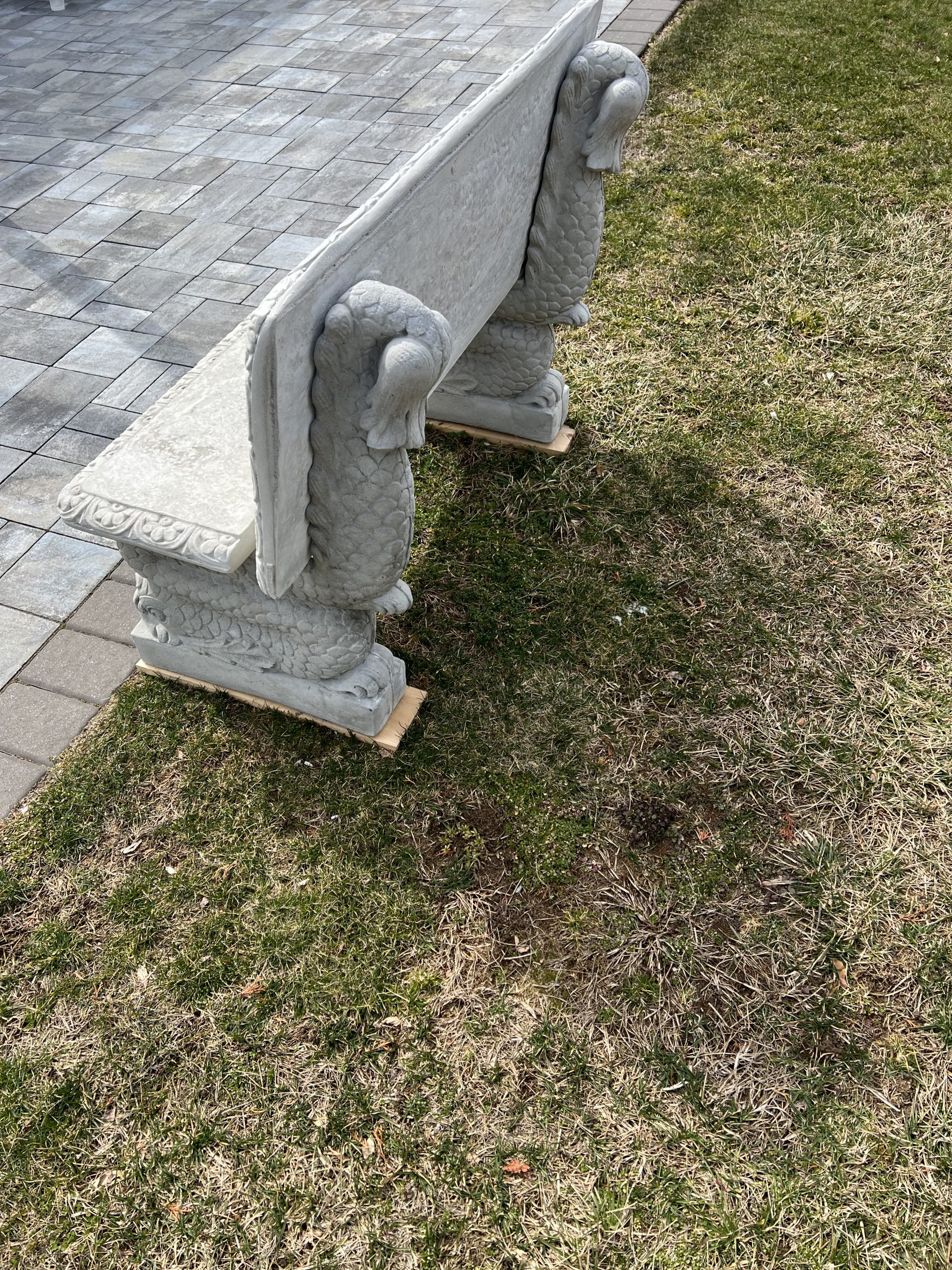 - Another recommendation from us would be to not place them directly under branches. We find that the natural dirt from plants builds up on the statues and you'll find your self spraying them down with the water hose more often.