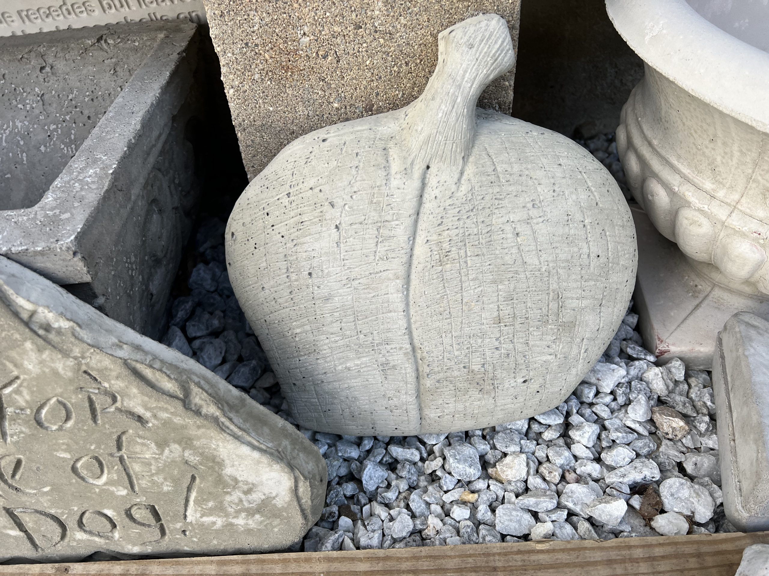 All of our statues are made out of concrete. Most items have some sort of support added to the statue such as rebar or aluminum wire throughout the piece to add strength.