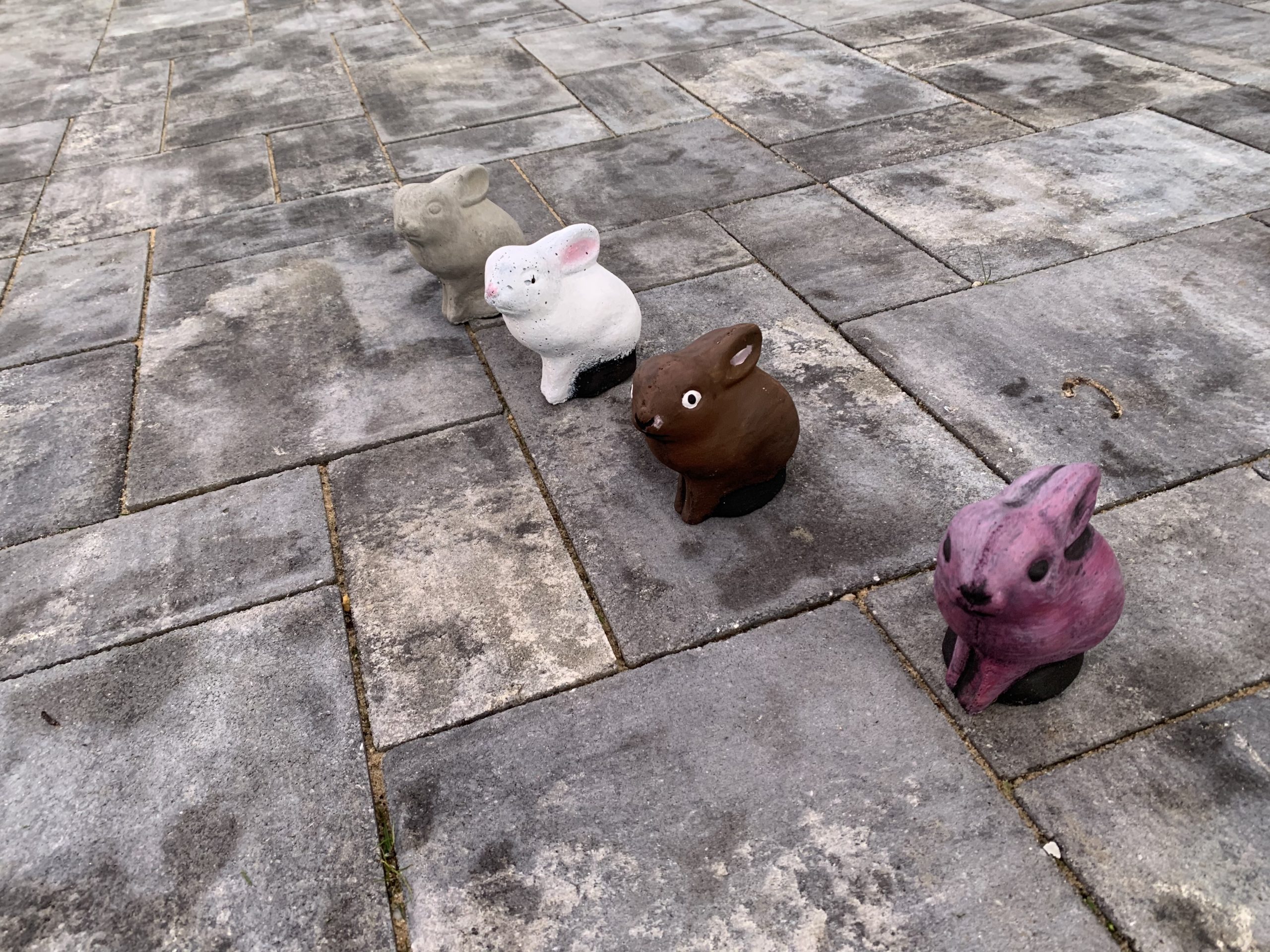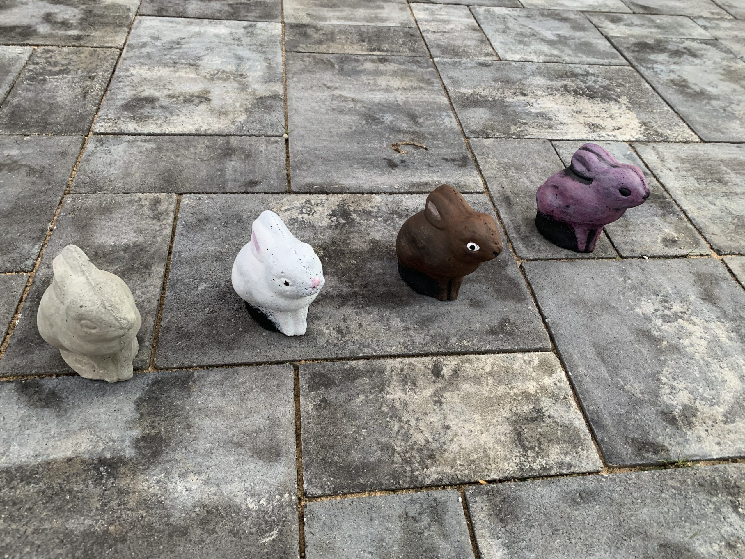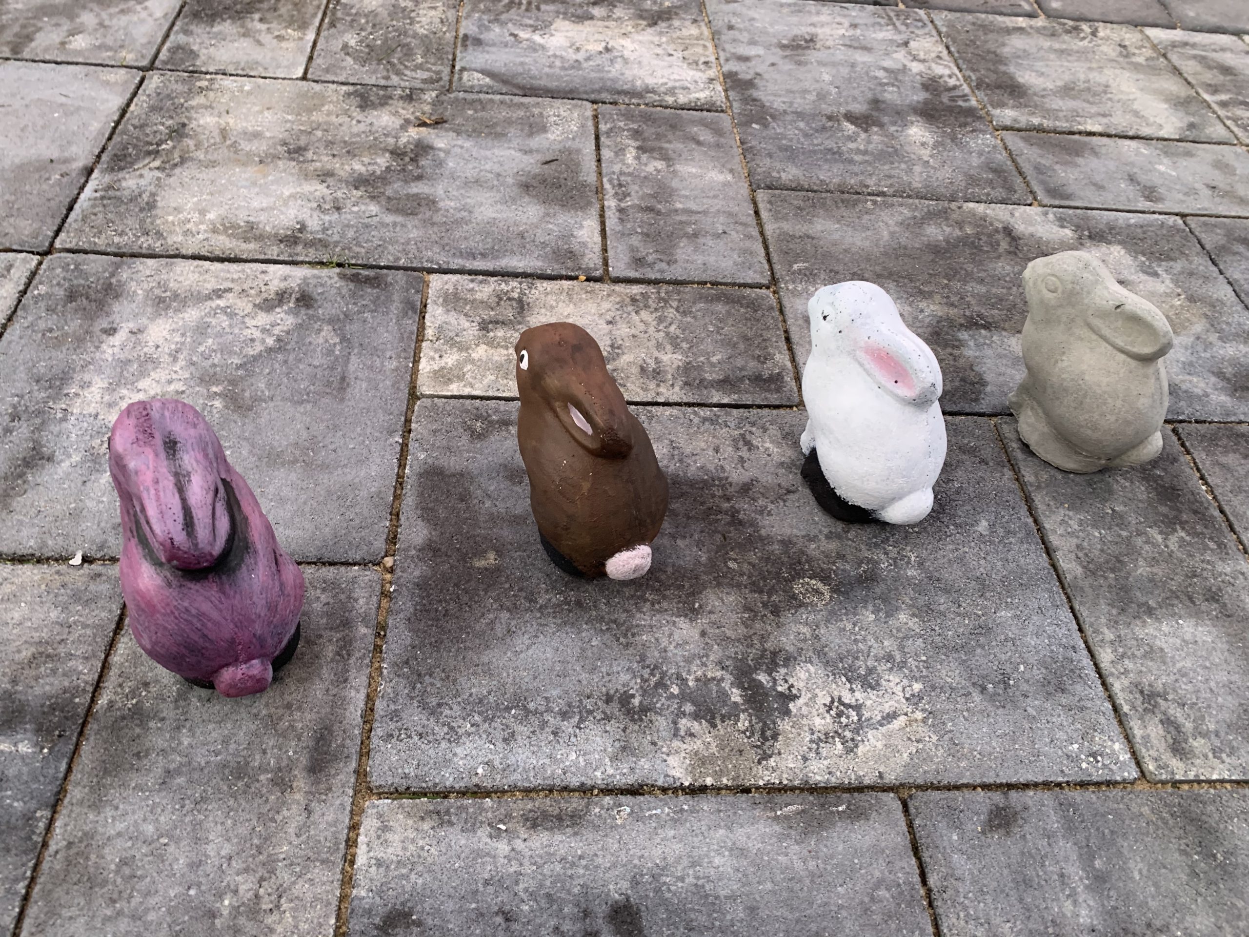 - Another recommendation from us would be to not place them directly under branches. We find that the natural dirt from plants builds up on the statues and you'll find your self spraying them down with the water hose more often.
