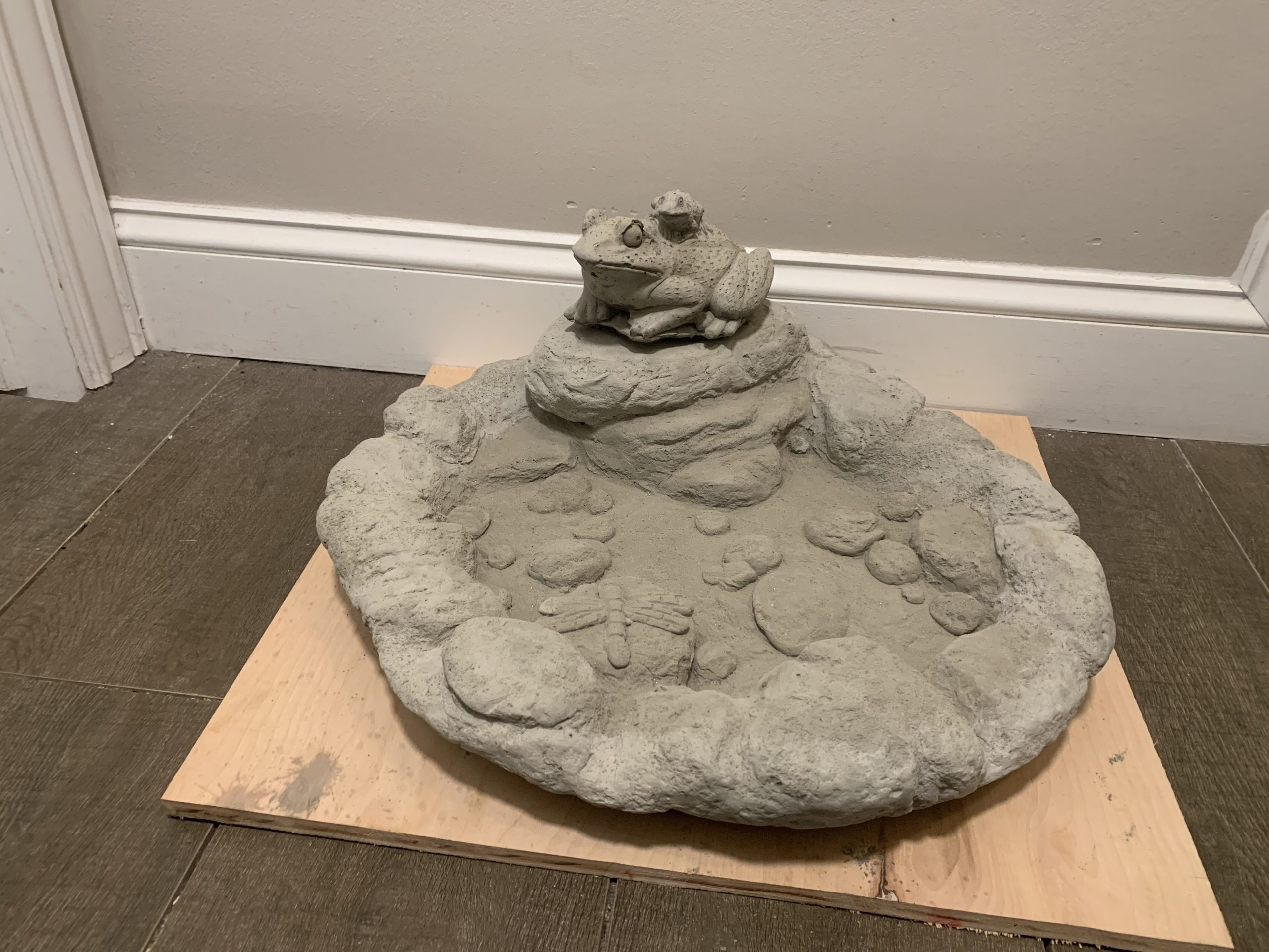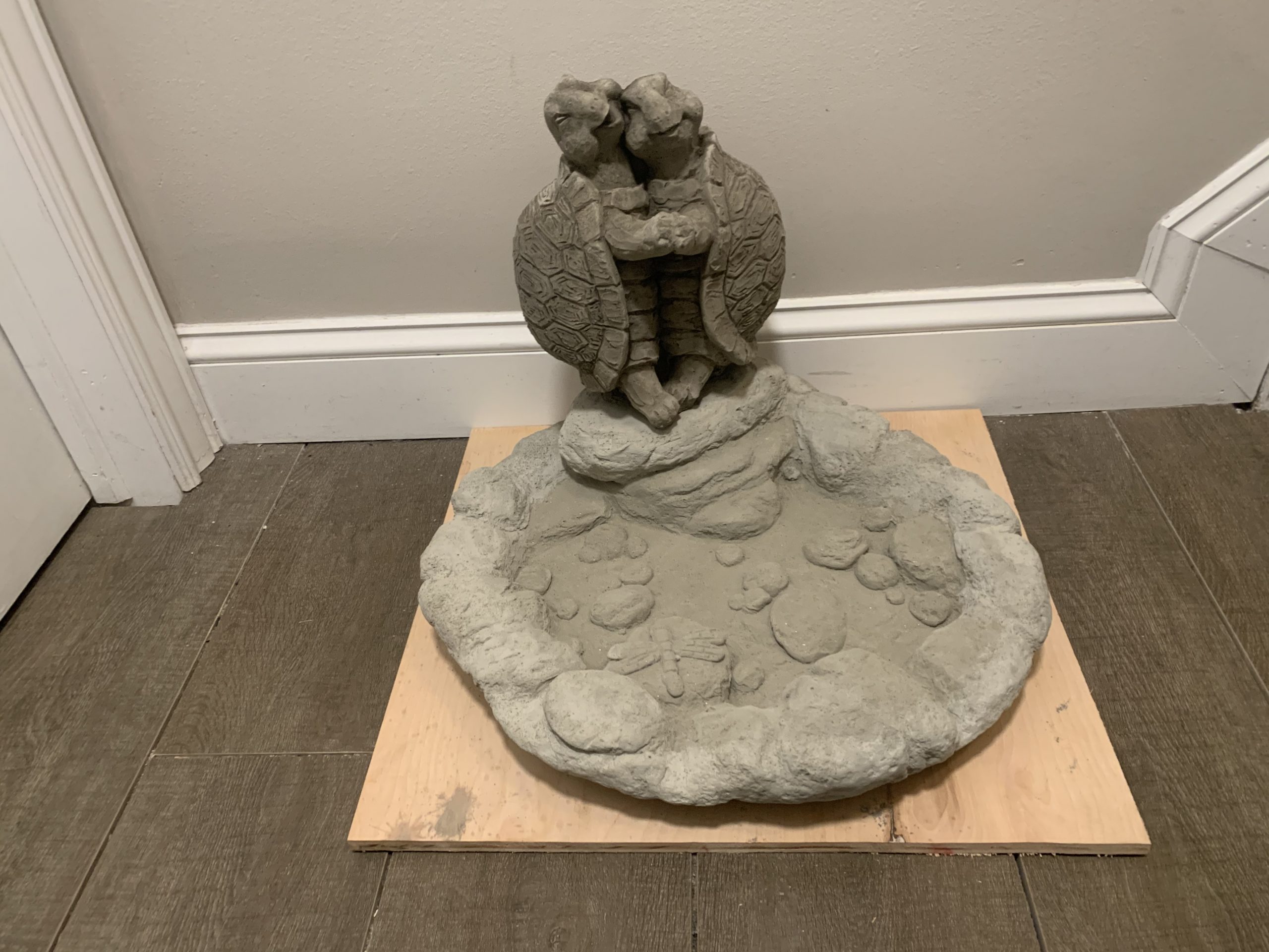 - Another recommendation from us would be to not place them directly under branches. We find that the natural dirt from plants builds up on the statues and you'll find your self spraying them down with the water hose more often.