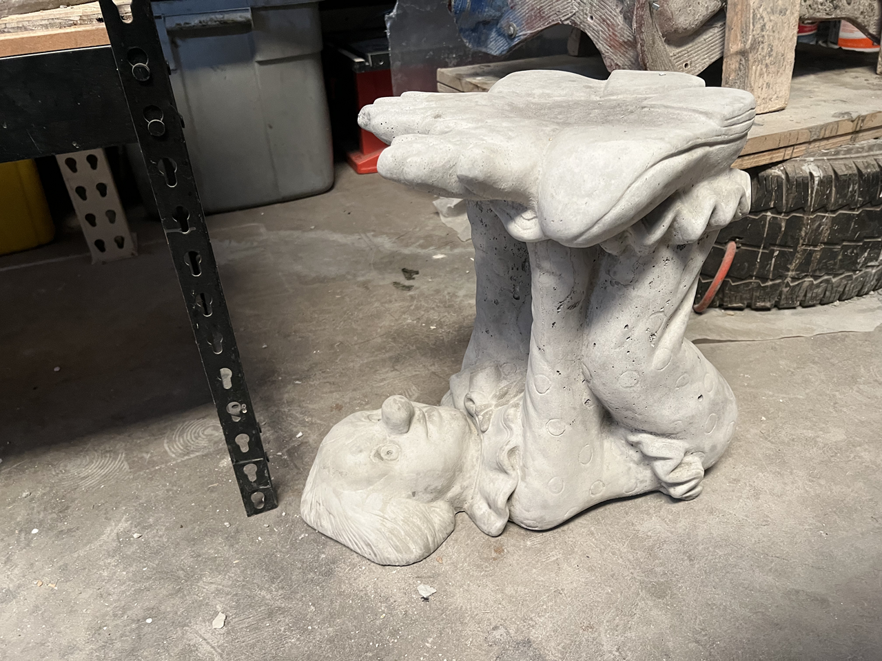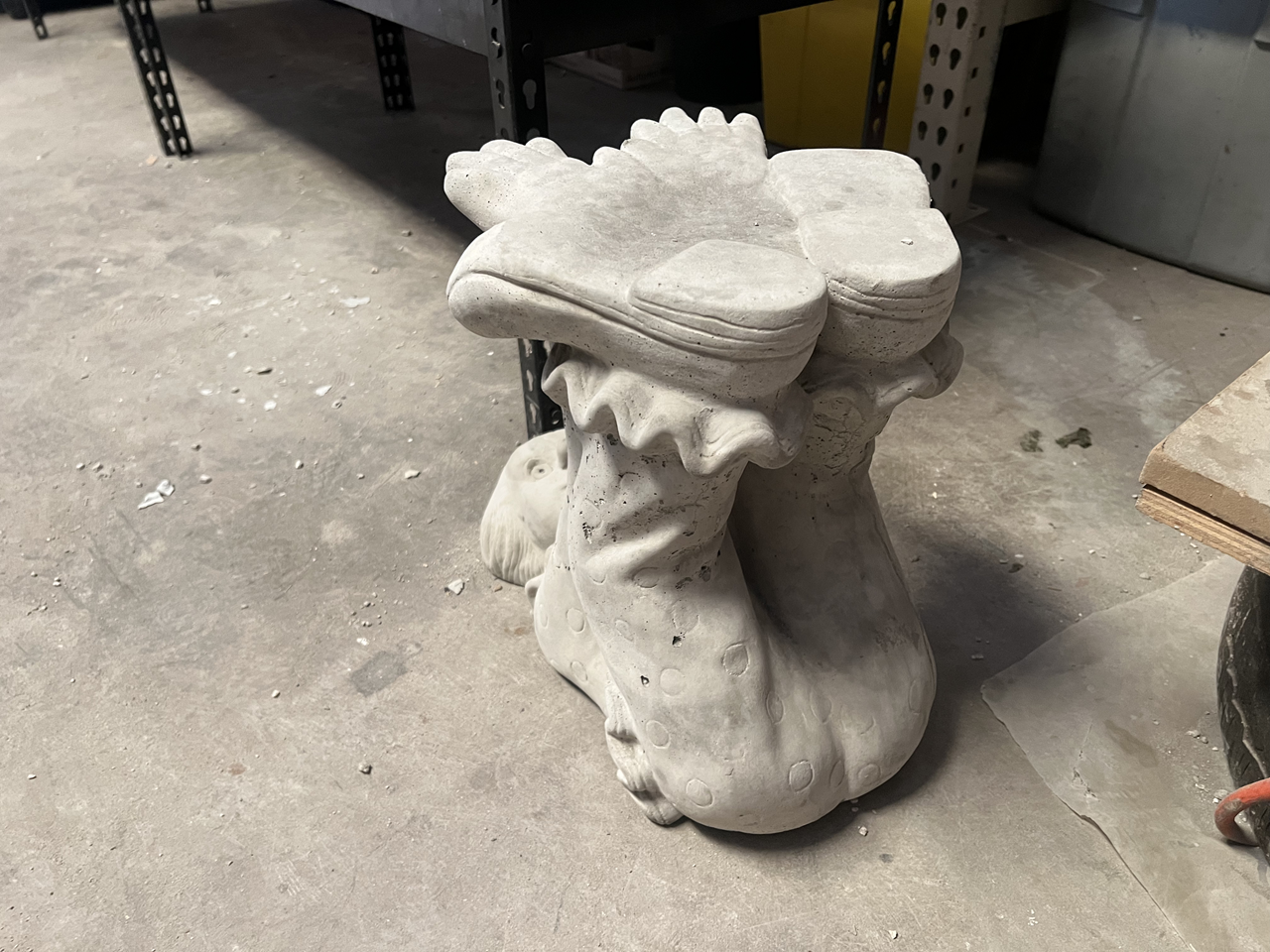 All of our statues are made out of concrete. Most items have some sort of support added to the statue such as rebar or aluminum wire throughout the piece to add strength.