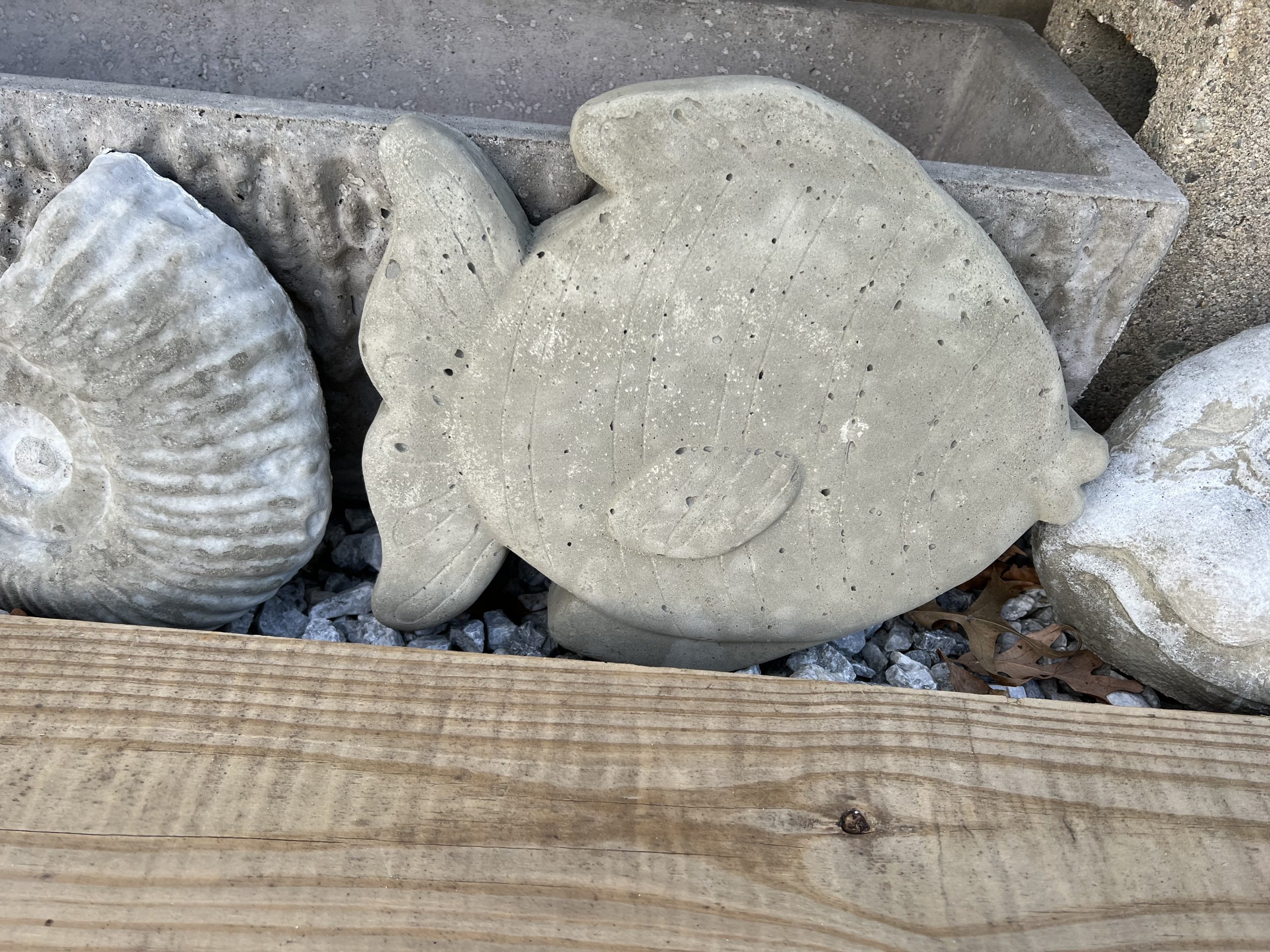 All of our statues are made out of concrete. Most items have some sort of support added to the statue such as rebar or aluminum wire throughout the piece to add strength.
