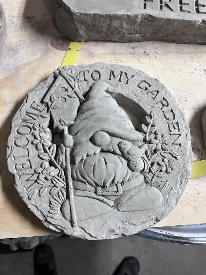 All of our statues are made out of concrete. Most items have some sort of support added to the statue such as rebar or aluminum wire throughout the piece to add strength.