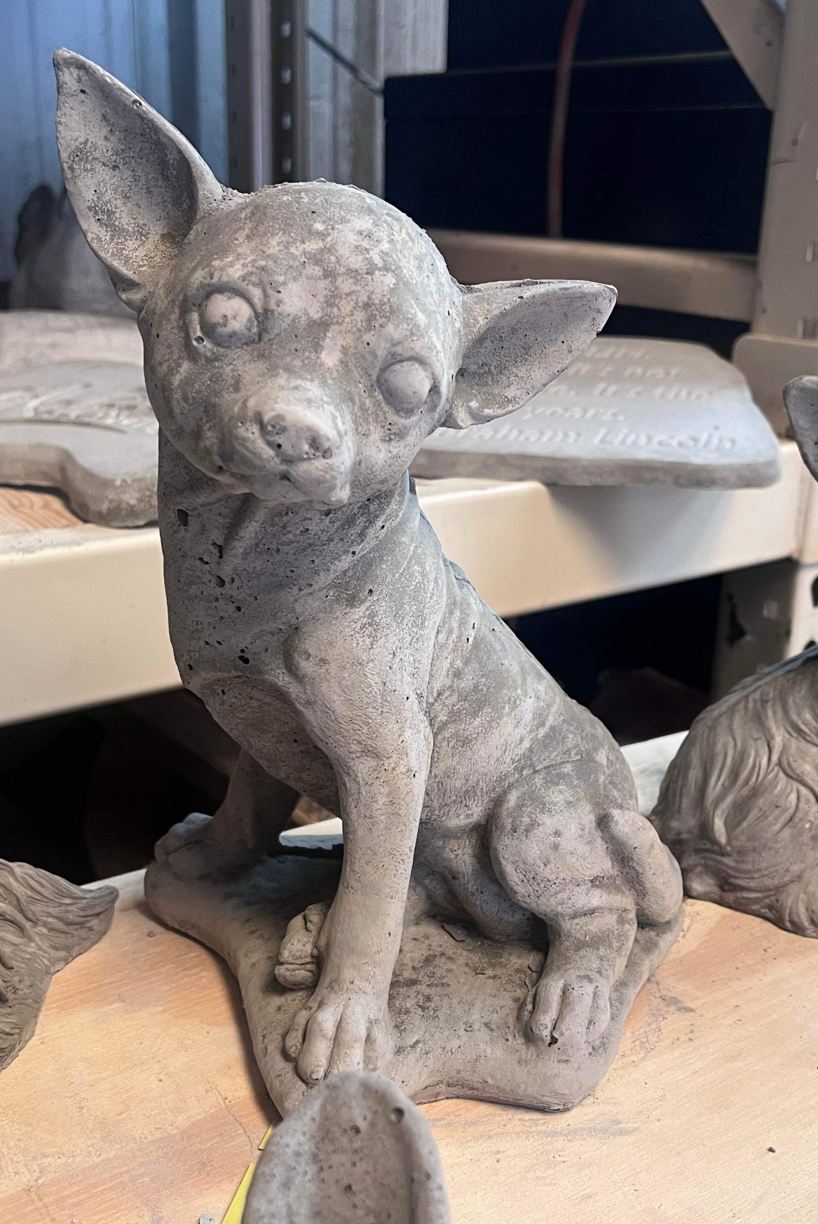 All of our statues are made out of concrete. Most items have some sort of support added to the statue such as rebar or aluminum wire throughout the piece to add strength.