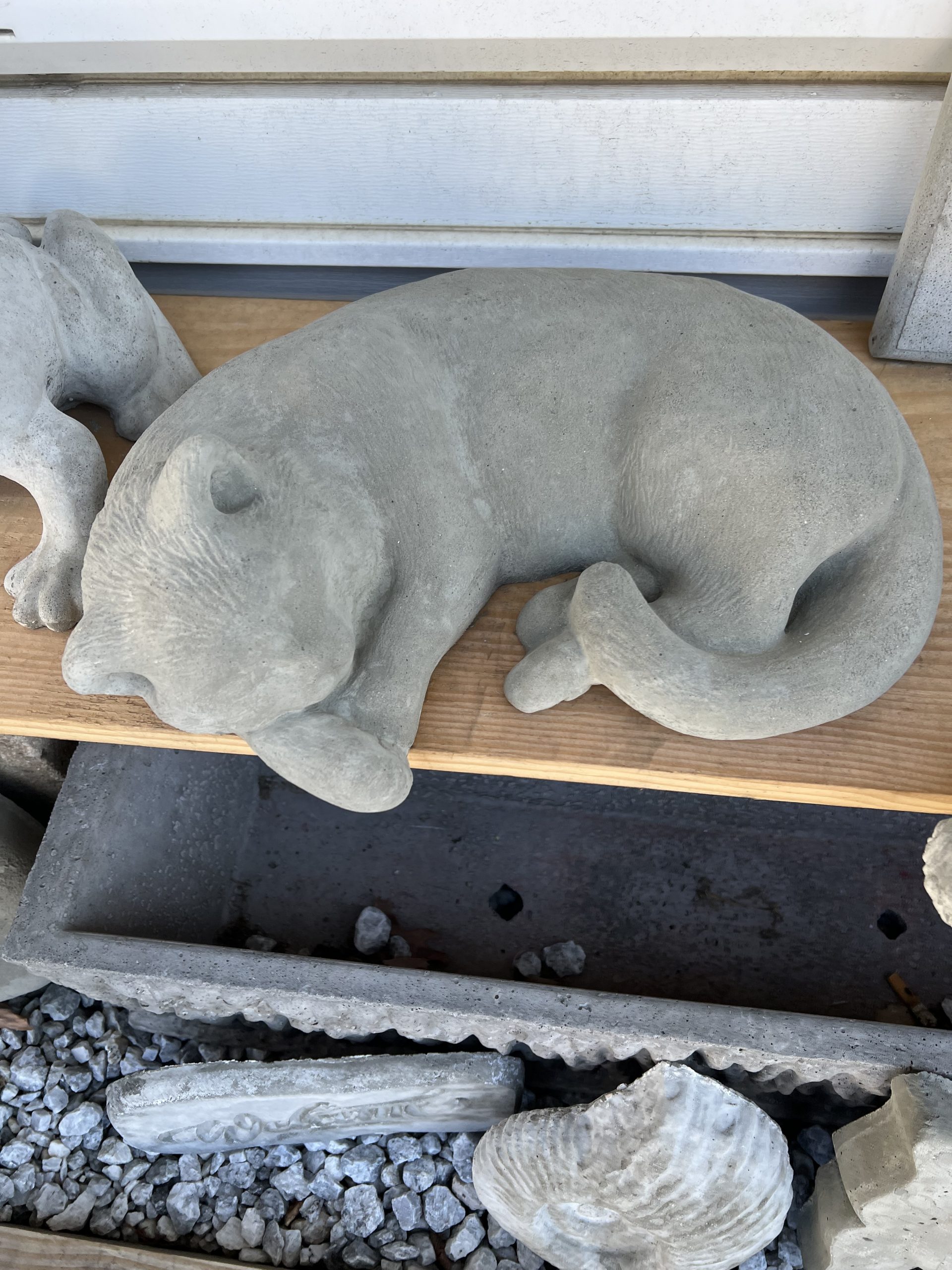 All of our statues are made out of concrete. Most items have some sort of support added to the statue such as rebar or aluminum wire throughout the piece to add strength.