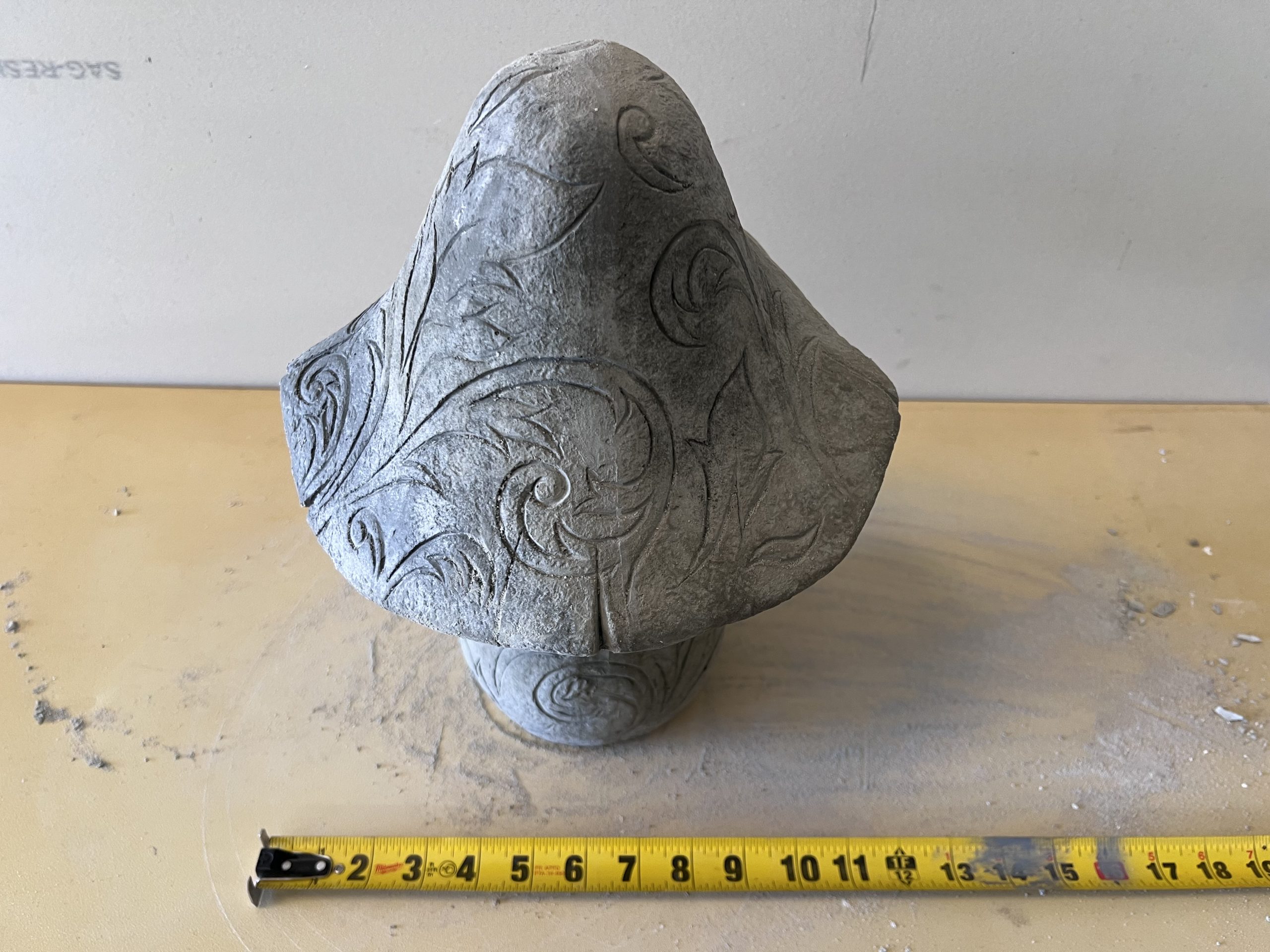 All of our statues are made out of concrete. Most items have some sort of support added to the statue such as rebar or aluminum wire throughout the piece to add strength.