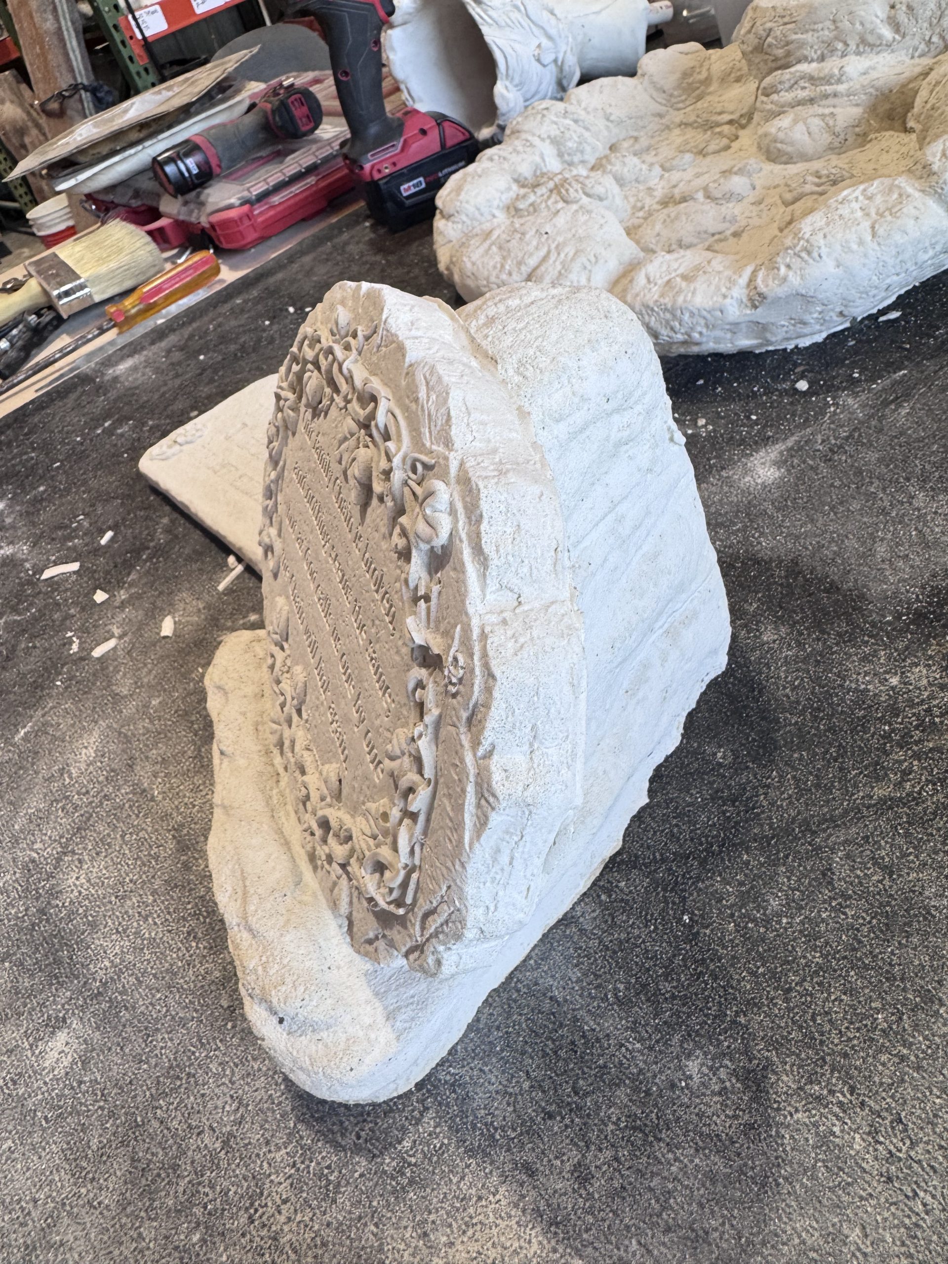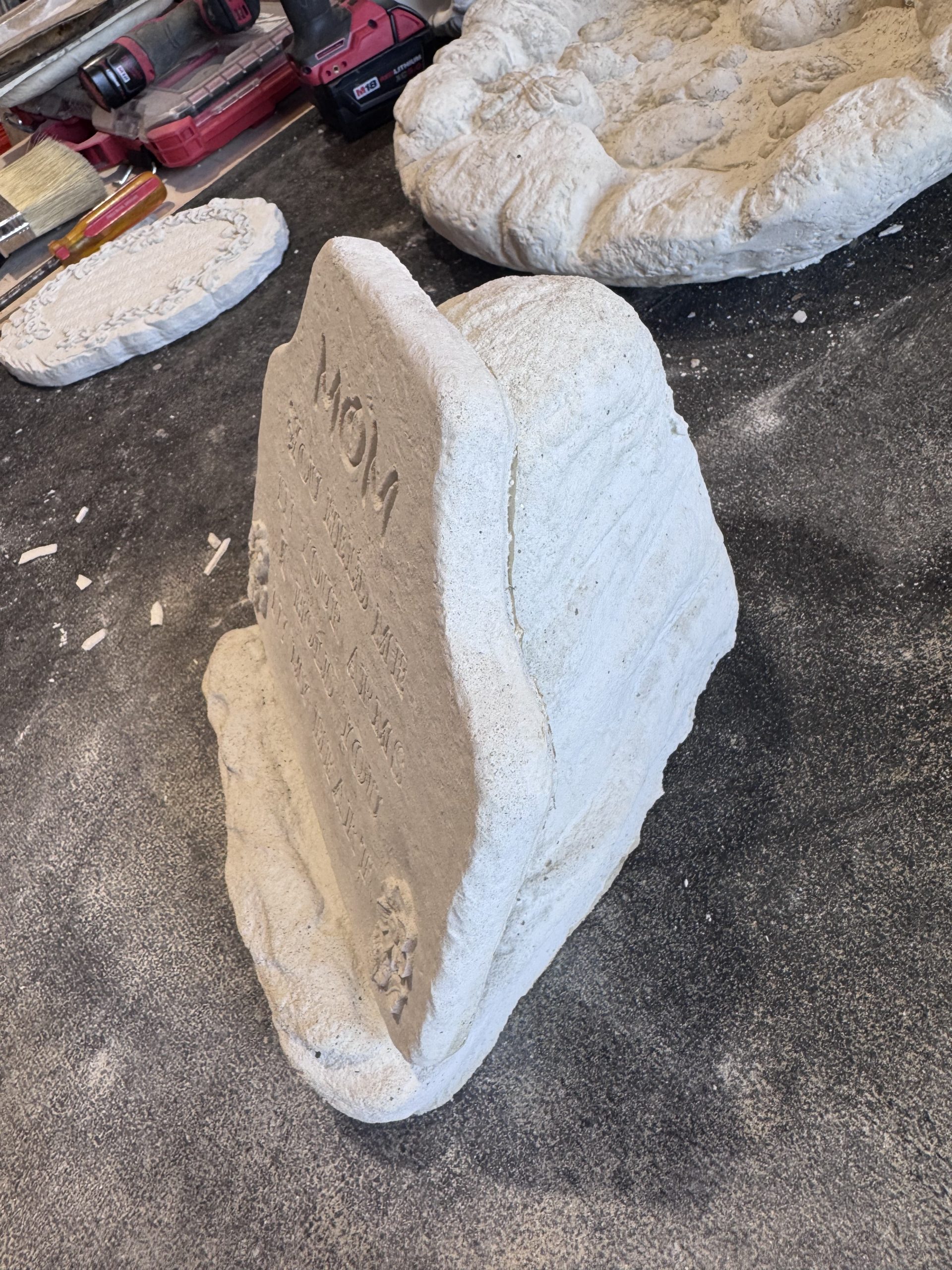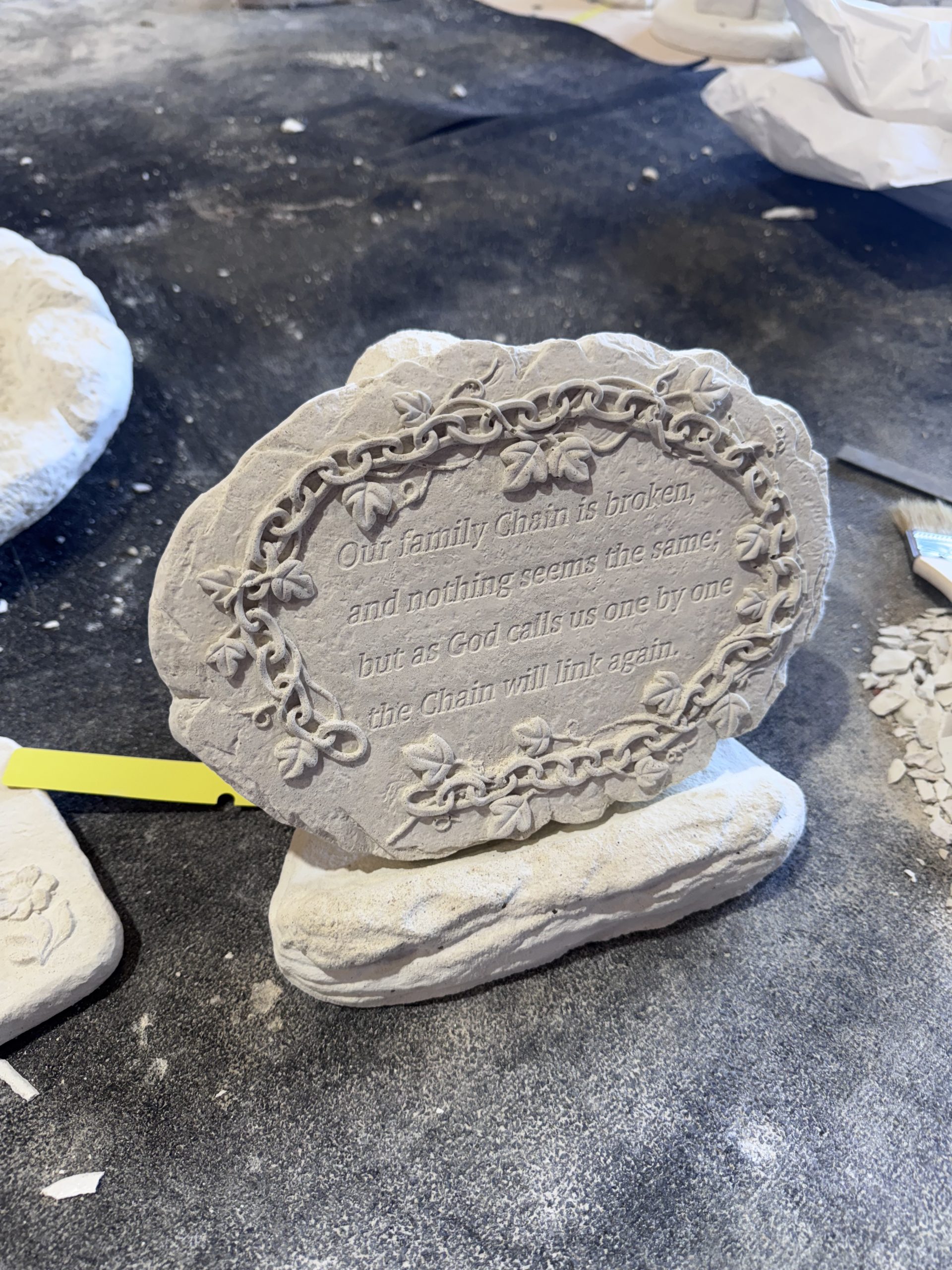 All of our statues are made out of concrete. Most items have some sort of support added to the statue such as rebar or aluminum wire throughout the piece to add strength.