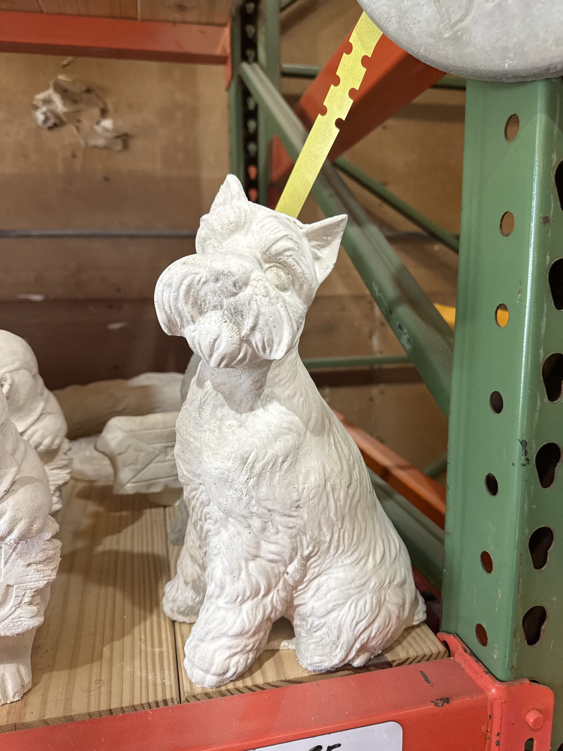 All of our statues are made out of concrete. Most items have some sort of support added to the statue such as rebar or aluminum wire throughout the piece to add strength.