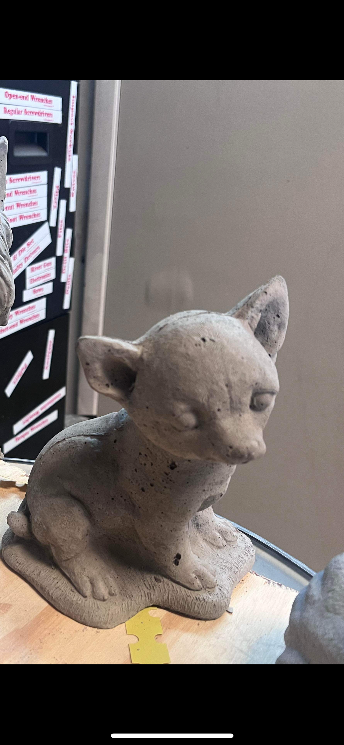 All of our statues are made out of concrete. Most items have some sort of support added to the statue such as rebar or aluminum wire throughout the piece to add strength.