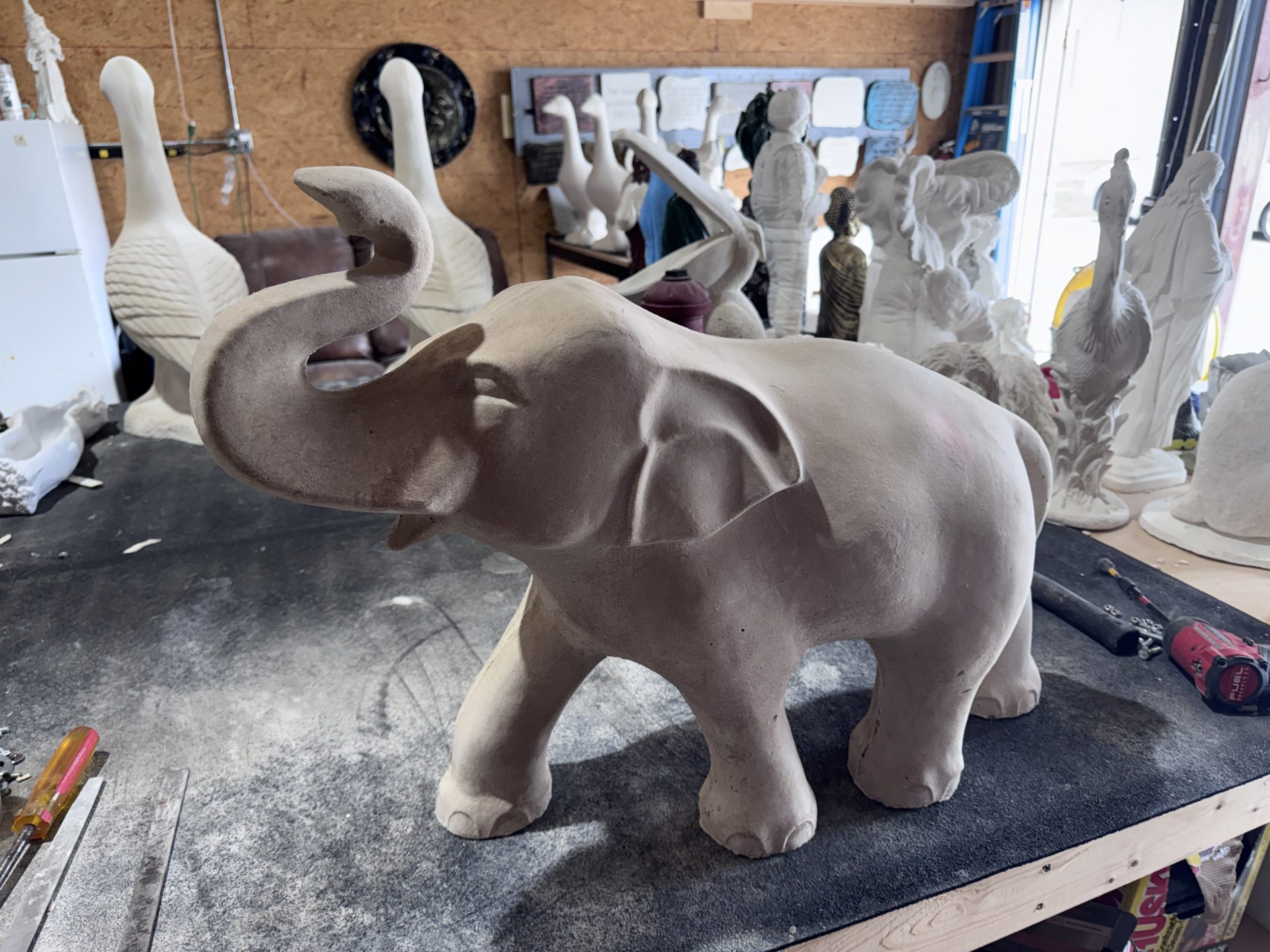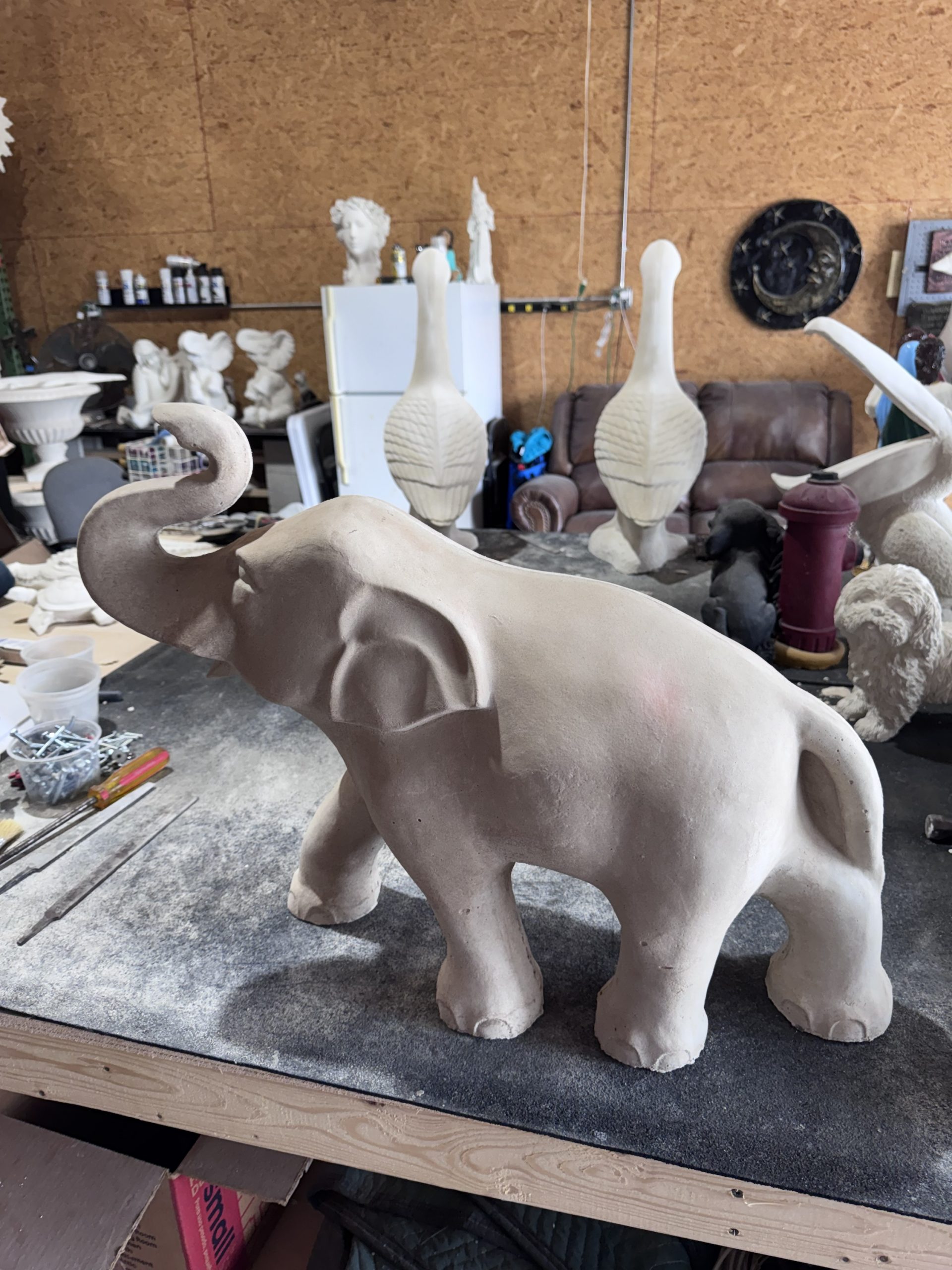 All of our statues are made out of concrete. Most items have some sort of support added to the statue such as rebar or aluminum wire throughout the piece to add strength.