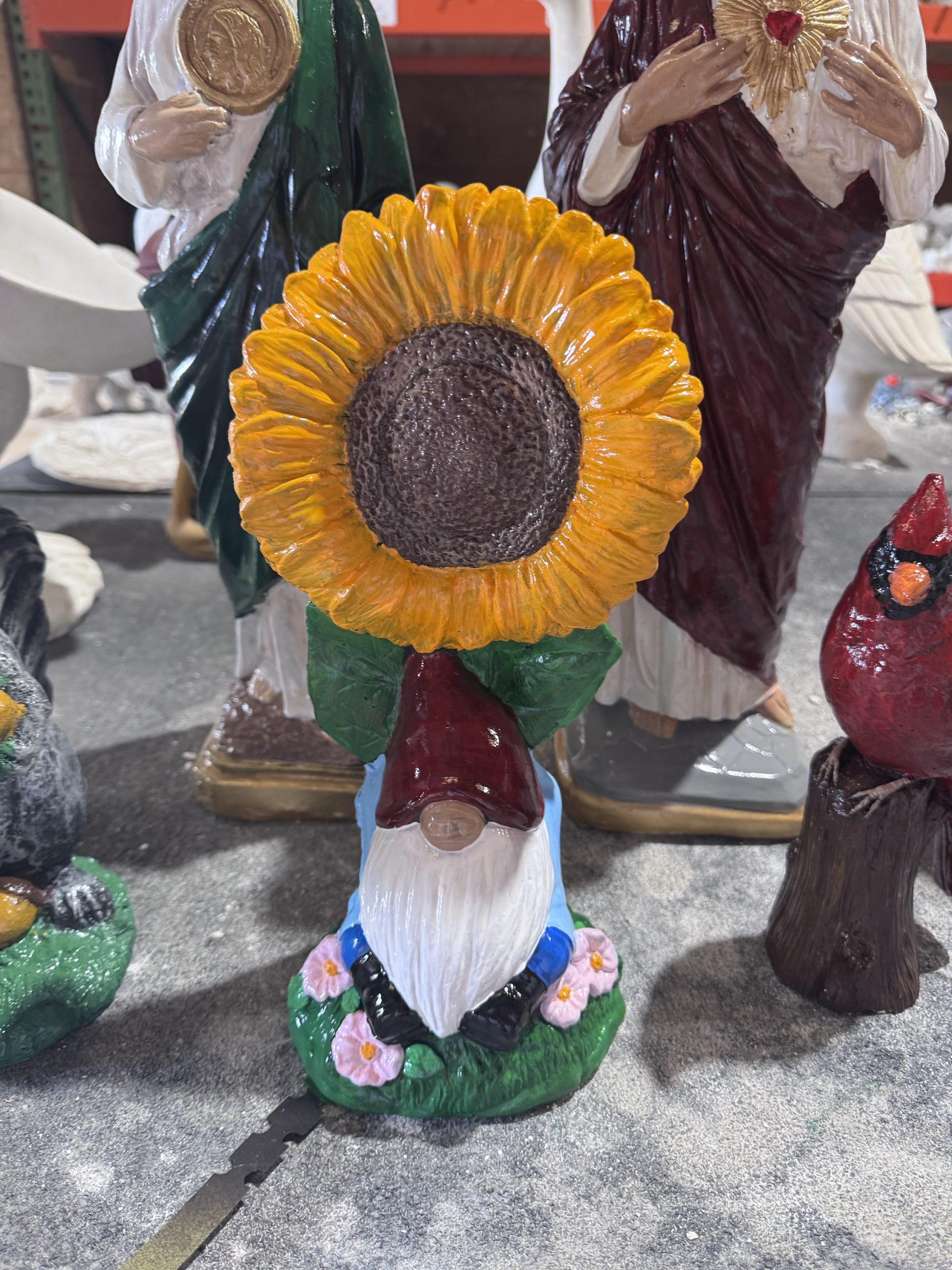 All of our statues are made out of concrete. Most items have some sort of support added to the statue such as rebar or aluminum wire throughout the piece to add strength.