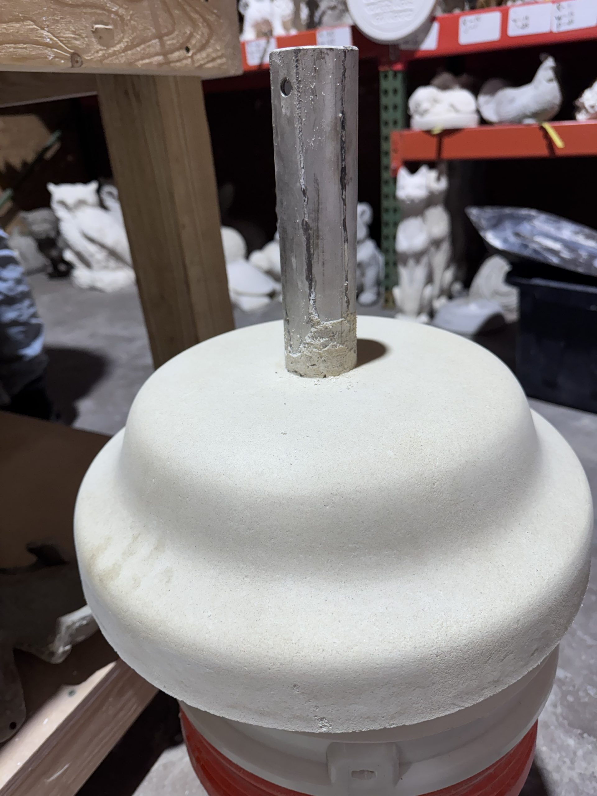 All of our statues are made out of concrete. Most items have some sort of support added to the statue such as rebar or aluminum wire throughout the piece to add strength.